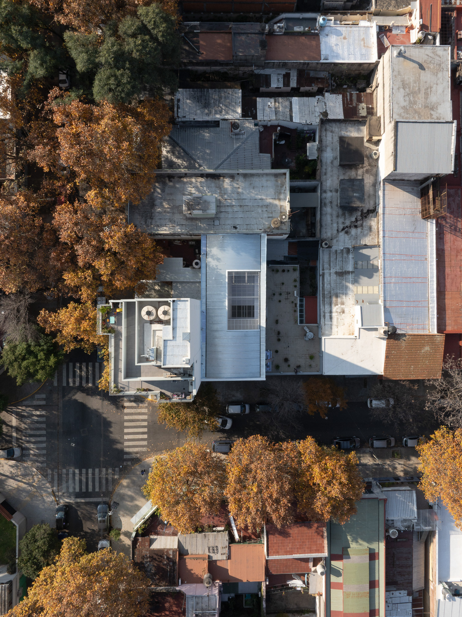 La estrategia proyectual apuntó a aprovechar al máximo la estructura original y transformarla lo menos posible. Esta decisión fue el punto de partida del proyecto. El primer gesto fue abrir un pulmón en el centro del lote, en el sector donde la fábrica presentaba una doble altura. Ese vacío permitió el ingreso de luz y aire al espacio, transformando completamente su carácter. A partir de esa operación, y con la premisa de no intervenir la estructura, la organización programática se definió casi de forma natural.
